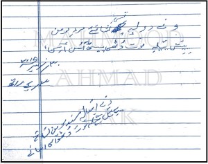 That very night, around 3 a.m. on 30 November, while I was sleeping beside him, he woke me up to accompany him to the washroom. When we returned, he asked for his diary and pen from near the window. I told him it was not the right time to write, but he insisted. I gave him the diary and pen. He wrote a few verses and recited them to me: